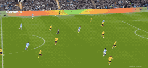 上半场补时阶段,曼城前场连续传递,B席送出助攻,塞梅尼奥完成进球。