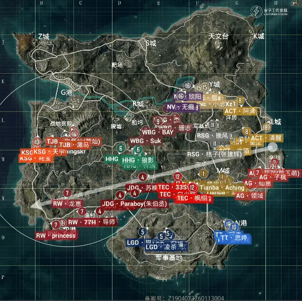 决胜时刻,信号圈缩在G镇附近,圈内剩余杭州LGD战队、广州TT战队和福州NV战队,此时场上1v4v4。NV战队先被TT战队淘汰出局,随后剩余两队展开对战,TT战队远点出枪淘汰LGD战队最后一人拿下比赛,TT获得本场比赛胜利。