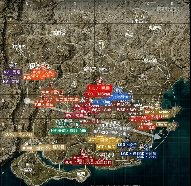 16分钟,WBG被Tianba一雷淘汰三个出局。19分钟,阶段刷新,KSG先被TEC打残,后被NV淘汰出局。随后,TEC将RW独狼淘汰,TJB也将TEC追击致死。21分钟,LGD淘汰,分数定格在177分。决胜时刻,AG/TT/4AM/KONE四队6个人,4AM先被淘汰,TT在被淘汰,最后子枫与passion皇城PK,最后KONE吃鸡。
